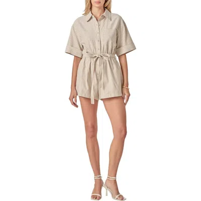 ENGLISH FACTORY Stripe Cotton Blend Romper In Neutral