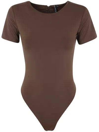 ENTIRE STUDIOS Crew Neck Short Sleeve Bodysuit In Brown