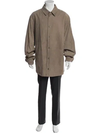 Pre-owned Leather Overcoat In Neutral