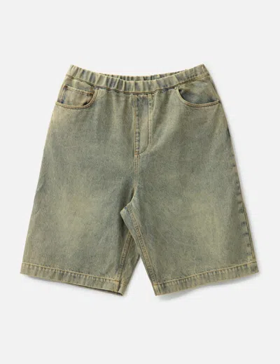 Entire Studios Spar Shorts Surface Wave Made of cotton denim Dirty spray Baggy fit Elasticated waistband with drawstring Two side pockets Two back patch pocket with snap buttons Branded hardware details Color: Surface Wave