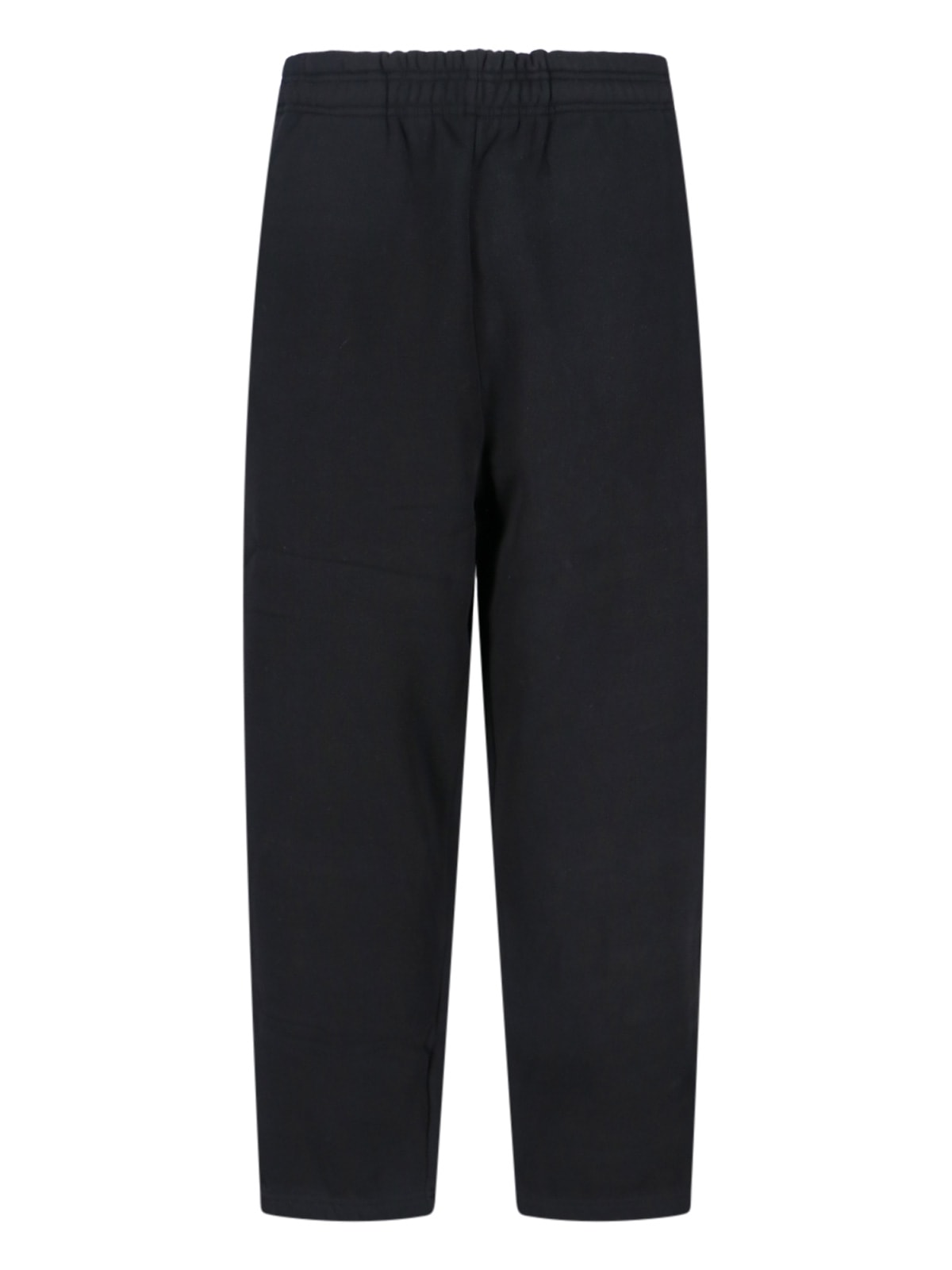 Entire Studios black cotton track pants with medium elastic waistband, two side pockets, one back pocket, elasticated hem, straight leg. Composition: 100% Organic Cotton