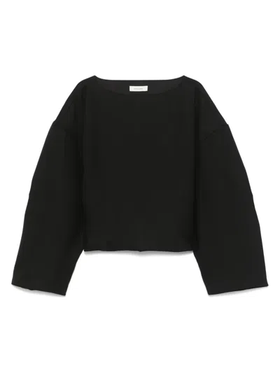 black boat neck drop shoulder long sleeves