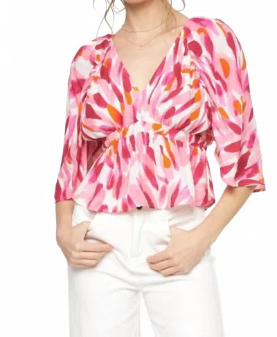 Long Sleeve Blouse In Pink/ Orange /white In Multi