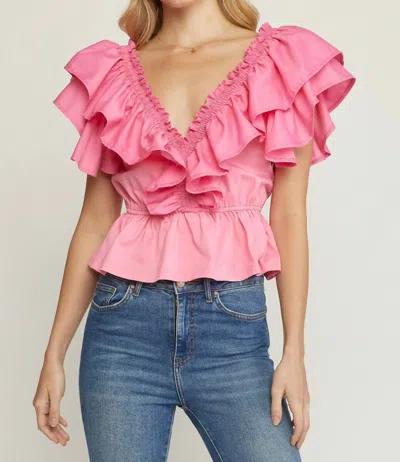 ENTRO Ruffled Peplum Top In Pink