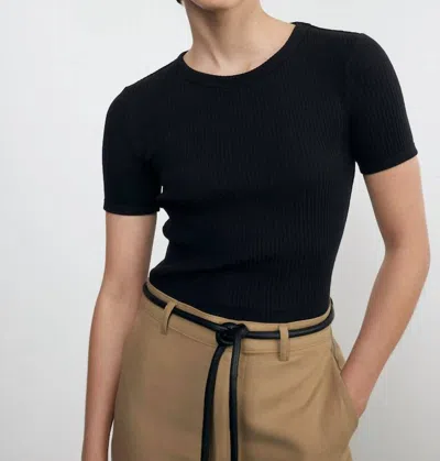 Pointelle Short Sleeve Top In Black