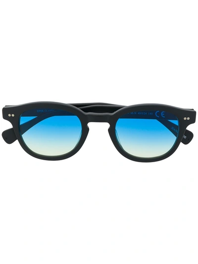 Black acetate Bronte glasses from Epos featuring round frames and tinted lenses. This item comes with a protective case. This item is unisex.