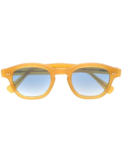 Yellow and blue Bronte sunglasses from Epos featuring gradient lenses, square frames and straight arms with curved tips. This item comes with a protective case.