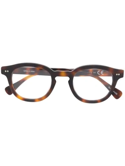 Tonal brown round frame glasses from Epos featuring a tortoiseshell effect and straight arms with angled tips. This item is unisex.