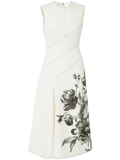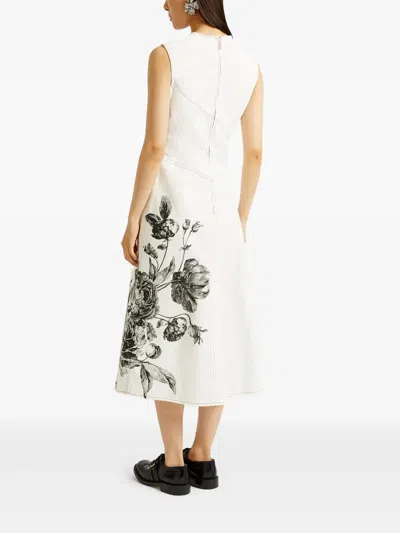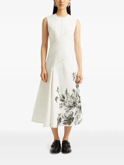 ERDEM Floral Print Midi Dress In Violetta Etching Ecr