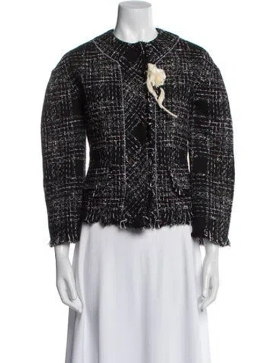 Erdem Jacket Black Tweed Pattern Fringe Trim Accent & Collarless Flap Pockets & Snap Closure Designer Fit: Jackets by Erdem typically fit true to size. | Erdem Tweed Pattern Jacket in Black, Women's US4, UK8 | S