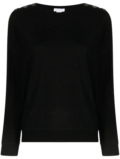 Black cashmere buttoned shoulders jumper from ERES featuring button fastening at the shoulder, round neck, long sleeves and straight hem.