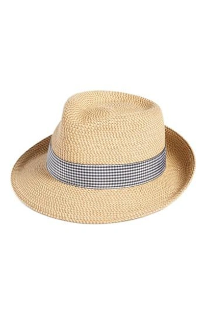 ERIC JAVITS Classic Squishee Packable Fedora Sun Hat In Peanut/ Black Check