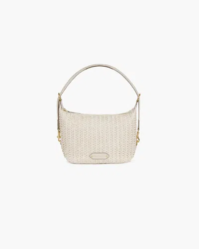 Woven synthetic raffia with leather trim Zip top closure Outer pocket on rear side Protective leather corners Soft yet sturdy construction Lightweight and durable