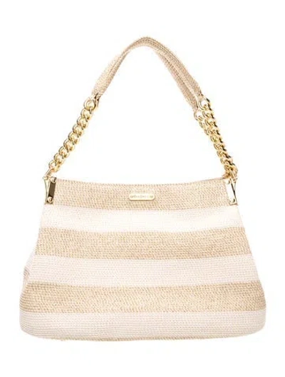 Eric Javits Shoulder Bag Metallic & Neutrals Raffia Striped Gold-Tone Hardware Flat Handles Chain-Link & Glitter Accents Single Exterior Pocket Canvas Lining & Five Interior Pockets Open Top Protective Feet at Base | Eric Javits Raffia Shoulder Bag in Metallic/Neutrals