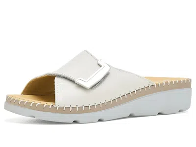 Eric Michael Agua - Women's Sandals : Bone : Step into effortless comfort with the Eric Michael Agua Sandals. Crafted from soft Italian leather, these easy slip-on wedge sandals feature a breathable leather lining and foam insole for all-day comfort. The hook-and-loop closure provides a secure, customizable fit for different feet, while the rubber sole ensures durability and traction. Classic wedge heel styling completes the versatile design. ; Made in Italy. Measurements: ; Heel Height: 1 3 4 in ; Weight: 1 lb 8 oz ; Product measurements were taken using size EU 37 (US Women's 6.5-7), width M (B). Please note that measurements may vary by size. | Eric Michael Agua Women's Sandals Bone : EU 40 (US Women's 9.5-10) M (B), Leather