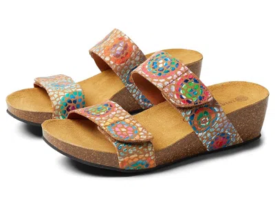 Eric Michael Liat - Women's Shoes : Mosaic : Switch to your weekend getaway mode wearing the comfy and stylish Eric Michael Liat footwear. ; Leather upper, lining and insole. ; Hook-and-loop strap closure. ; Round toe. ; Vibrant detailing on toe straps. ; Synthetic outsole. ; Made in Spain. Measurements: ; Heel Height: 2 in ; Weight: 10 oz ; Platform Height: 3 4 in ; Product measurements were taken using size EU 39 (US Women's 8.5-9), width M (B). Please note that measurements may vary by size. | Eric Michael Liat Women's Shoes Mosaic : EU 42 (US Women's 11-12) M (B), Leather
