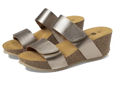 Eric Michael Lily 2 - Women's Sandals : Bronze Metallic : Attain an unbeatable stylish look donning the Eric Michael Lily 2. This wedge-heeled sandal has a two-adjustable hook-and-loop strap closure, open round toe design, and cushioned footbed to relieve heel pain. ; Rubber upper. ; Leather lining. ; Leather insole. ; Slip-on style. ; Brand detailing on the footbed. ; Rubber outsole. ; Made in Portugal. Measurements: ; Heel Height: 3 in ; Weight: 8 oz ; Product measurements were taken using size EU 37 (US Women's 6.5-7), width M (B). Please note that measurements may vary by size. | Eric Michael Lily 2 Women's Sandals Bronze Metallic : EU 38 (US Women's 7.5-8) M (B), Leather