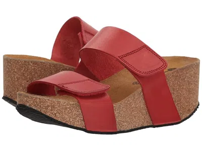 Eric Michael Lily - Women's Sandals : Red : If you liked the Eric Michael™ Cody sandal, you'll love the Lily. ; Sophisticated platform sandal features a premium leather upper. ; Dual hook-and-loop closures for adjustable wear and a more secure fit. ; Naturally moisture-wicking leather lining. ; Comfortable padded footbed helps fight fatigue. ; Matching leather partially covers the heel. ; Durable non-skid outsole. ; Made in Portugal. Measurements: ; Heel Height: 2 1 2 in ; Weight: 10 oz ; Platform Height: 1 in ; Product measurements were taken using size EU 38 (US Women's 7.5-8), width M (B). Please note that measurements may vary by size. | Eric Michael Lily Women's Sandals Red : EU 41 (US Women's 10-11) M (B), Leather