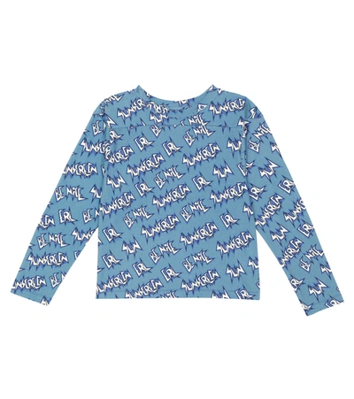 Blue cotton Be Nice pattern print T-shirt from ERL KIDS featuring all-over logo print, Be Nice pattern print, round neck and long sleeves.