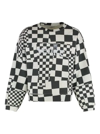black and white checkerboard pattern crew neck long sleeves ribbed hem
