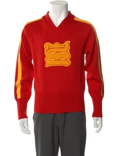 ERL Pullover Red Graphic Print Embroidered Accent Long Sleeve with V-Neck Fit: Sweaters by ERL typically fit true to size. | ERL Graphic Print V-Neck Pullover w/ Tags in Red, Men's M