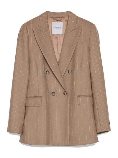 ERMANNO FIRENZE Double-breasted Pinstriped Jacket In Brown