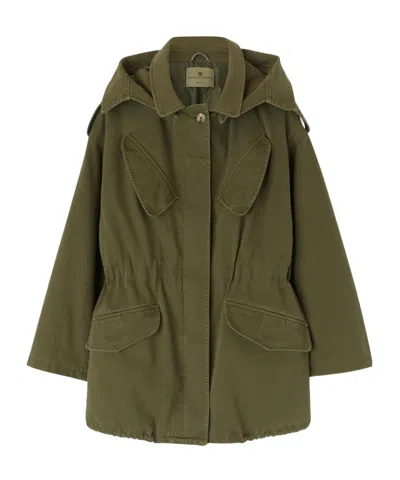 ERMANNO SCERVINO Canvas Parka With Hood And Flared Sleeve In Green