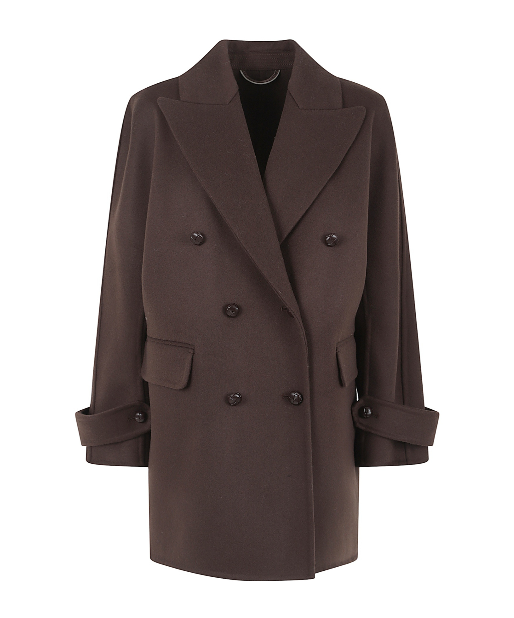 Double-breasted Coat In Brown