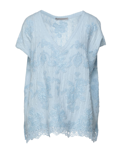 knitted, contrasting applications, v-neck, basic solid color, lightweight knit, short sleeves, no pockets , Color: Sky blue , Size: M