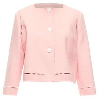 ERMANNO SCERVINO Virgin Wool Eyelet Trim Shell Button Jacket In Pink