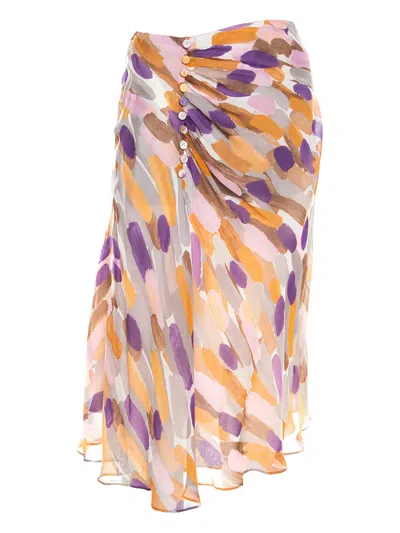 Pre-owned Brushstroke-pattern Midi Skirt In Multi