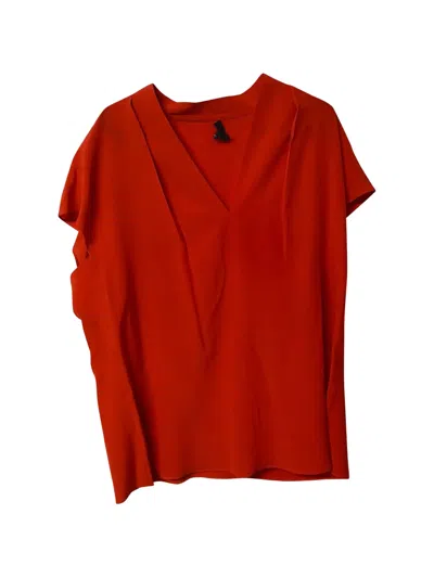 black checkered trousers V-neck orange blouse Condition: EXCELLENT. This previously owned item is in near-perfect condition with no signs of damage or use.