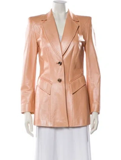 Escada Leather Blazer Metallic & Orange Pointed Collar Flap Pockets & Button Closure Fit: Jackets by Escada typically fit true to size. | Escada Leather Blazer in Metallic/Orange, Women's US4, DE34 | S