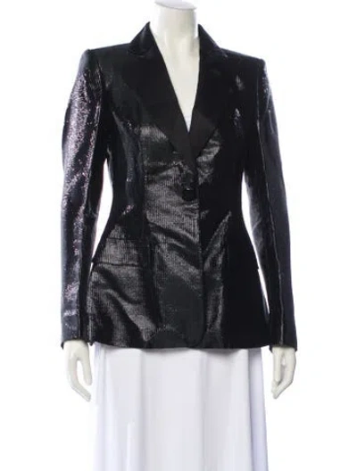 Escada Blazer Blue Printed Pointed Collar Flap Pockets & Snap Closure Fit: Jackets by Escada typically fit true to size. | Escada Printed Blazer in Blue, Women's US4, DE34 | S