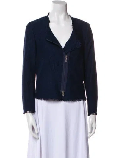 Escada Sport Evening Jacket Blue Fringe Trim Accent & Collarless Zip Closure Fit: Jackets by Escada Sport typically fit true to size. | Escada Sport Evening Jacket in Blue, Women's US6, DE36 | M