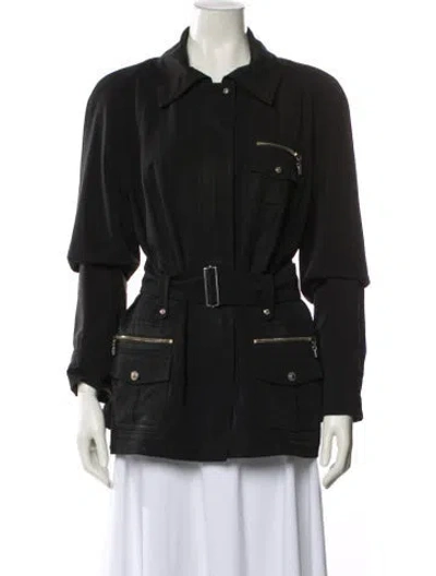 Escada Utility Jacket Black Pointed Collar Zip Pockets & Button Closure Fit: Jackets by Escada typically fit true to size. | Escada Utility Jacket in Black, Women's US14, DE44 | XL