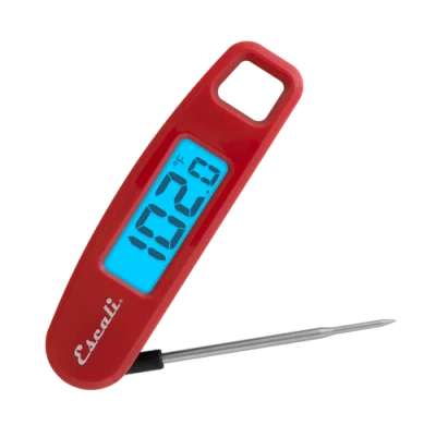 The Escali DH6 is an extremely compact thermometer with a folding probe design. This folding design allows the unit to fold down to approximately 4.5" making it extremely portable and the perfect size for a pocket. Despite its small size, the DH6 boasts a large backlit display that is easy to read in all lighting conditions and viewing angles. A magnet on the back of the unit can attach the thermometer to a grill or other metallic object to keep the thermometer within arm's reach when cooking and a hanging hole allows for storage on a hook keeping the unit from bouncing around in a kitchen drawer. The DH6 is a great product for the home or outdoor cook looking for an easy-to-use product at a reasonable price. Number of Batteries: 1Features: Digital DisplayPower Source: Battery (included)Measurements: 7.75 Length/InchesMaximum Temp (f): 392 Degrees FAssembly: AssembledBase Material: 100% PlasticBattery Size: Cr2032Care: Wipe CleanCountry of Origin: Imported