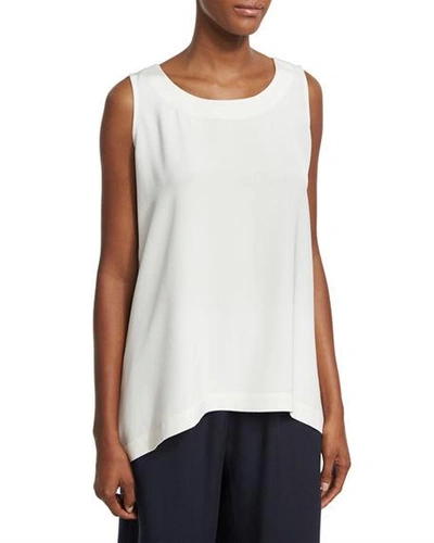 Eskandar top in lightweight linen shell Scoop neckline; button tab shoulder Sleeveless A-line silhouette Mid plus length Pullover style Linen Made in Italy
