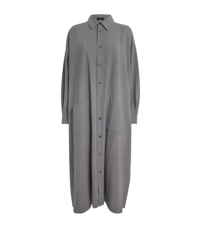ESKANDAR Angle To Front Side Seam Shirtdress With Collar In Gray