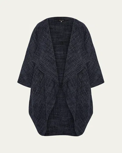 Eskandar cocoon coat in textured herringbone twist Approx. 45.3"L from shoulder to hem Open front 3/4 sleeves Wide fit Hem falls below the knee Cashmere Unlined Made in Poland