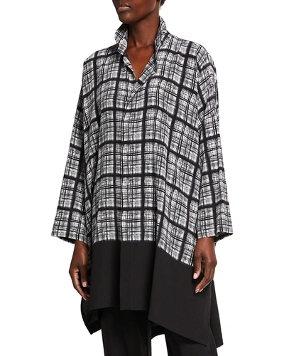 Geometric-print Button-front Shirt With Longer Back In Charcoal