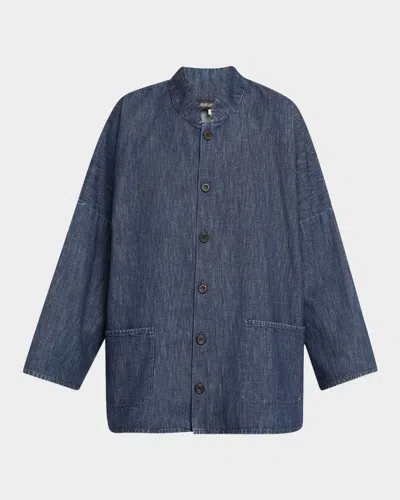 ESKANDAR Slim A-line Double Stand Collar Jacket With Side Insert (long Length) In Jean Dark