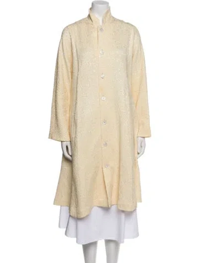 Eskandar Wool Coat Neutrals Printed Stand Collar Long Slit Pockets & Button Closure Designer size 1. Fit: Coats by Eskandar typically fit true to size. | Eskandar Wool Printed Coat in Neutrals, Women's L