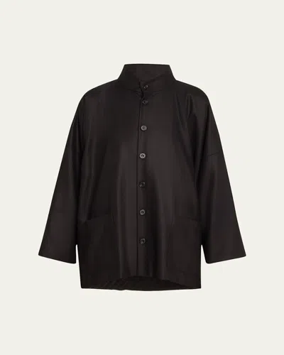 ESKANDAR Wool Silk Button-front Jacket In Black