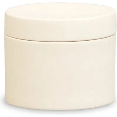 The Sabbia container is part of a bathroom set designed for Oliver Thom by ESKO.This versatile container is an easy storage solution for the bathroom and beyond, housing everything from cotton pads to jewellery. Dimensions: 10cm Dia x8cm H Material: Stoneware with a matte exterior and contrasting gloss interior for a natural and textural feel.