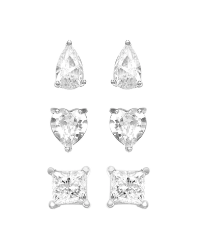 ESSENTIALS 3pc Set Cubic Zirconia Stud Earrings Silver Plated