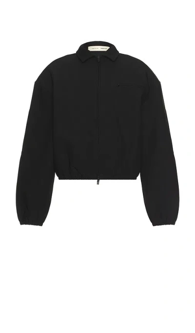 Fear of God ESSENTIALS Bonded Canvas Zip-Up Jacket in Black. Size S. Also in L, M, XL/1X. Fear of God ESSENTIALS Bonded Canvas Zip-Up Jacket in Black. Size L, M, XL/1X. 76% polyester 20% rayon 4% spandex. Hand wash. Dual front zip closure. FALF-MO24. 202SP258060F.