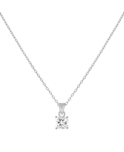 Cubic Zirconia Solitaire Pendant Necklace, 16" + 2" Extender In Gold Plate In Silver