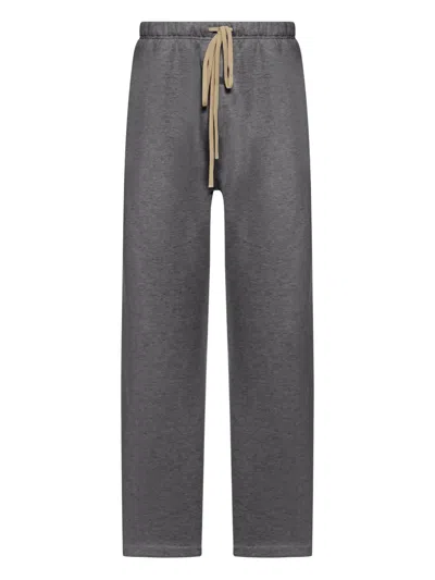 ESSENTIALS Elasticated Drawstring Trousers In Gray