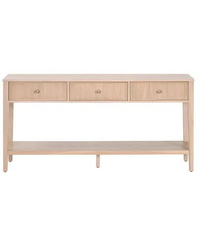 Color/Finish: Natural Design Details: Crafted With A Blend Of Solid Oak And Oak Veneer, This Highland 3-Drawer Console Table By Essentials For Living Offers A Transitional Style That Complements Both Modern And Classic Spaces. The Natural Oak Finish Highlights The Beauty Of The Wood Grain, While The Fluted Wood Drawer Fronts Add Dimension And A Decorative Touch. Each Drawer Is Felt-Lined To Protect Valuables And Features Iron Drawer Knobs With A Polished Brass Finish. The Piece Is Constructed With Dovetail Joinery For Enhanced Durability As Well. Measuring 60 Wide, 14.5 Deep, And 29.5 High, With Three Storage Drawers And A Storage Shelf, The Table Is As Practical As It Is Stylish. Measurements: 60In X 14.5In X 29.5In 3 Drawer(S) 1 Shelf/Shelves Solid Oak Wood, Mdf, Oak Veneer, Iron, Felt Assembly Required Imported This Item Will Be Delivered Via Freight Delivery To A Residential Address. (Deliverable Addresses Include Homes, Home-Based Businesses, College Dormitories, Apartments, And Townhouses. Deliveries Will Be Made To The Building's Ground Floor Entrance Or Garage Entrance Only.) Within Two Weeks Of Receiving Your Shipping Confirmation Email, You Will Receive A Phone Call Or Text Message From The Delivery Service To Set Up An Appointment For Delivery (Please Confirm The Phone Number Listed With Your Billing Address Before You Place Your Order).By Placing Your Order And Providing Your Cell Phone Number, You Consent To Receive A Call Or A Text Message From The Delivery Service For The Purpose Of Scheduling The Delivery Of Your Item. Please Note: Appointments Are Contingent With The Business Hours And Availability Of The Delivery Service. You Must Be Present To Sign For The Item At The Arranged Time. A Confirmation Number And Further Details About The Delivery Service Will Be Sent Once Your Order Has Been Shipped.